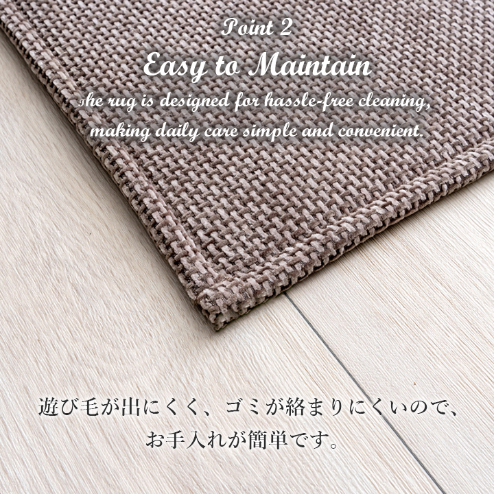 ■ 遊び毛が出にくく、ゴミが絡まりにくいので、お手入れが簡単です。